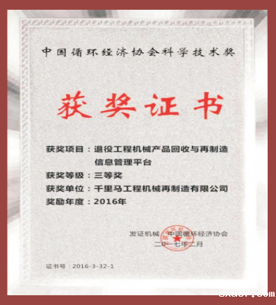 获奖项目:退役工程机械产品回收与再制造信息管理平台 获奖等级:三等奖